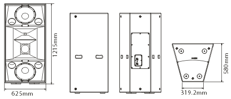 ◇高声压高灵敏度三分频全频扬声器系统 ◇号角指向角水平90°,垂直60° ◇二只12″低音单元,一只10″中音单元,一只3″高音压缩驱动器 ◇中高频之间内置无源分频器;中低频之间需外接分频设备 ◇采用电脑优化模拟设计 ◇紧凑型箱体设计,方便安装及运输 ◇适用于剧院、演艺厅、电视演播厅、多功能厅等场所的扩声使用 ◇用于大型音响工程或流动系统的扩声 ◇用于高质量的扩声系统